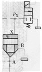 對插裝閥的控制腔X的壓力進行控制,便可構成壓力控制閥。圖6-64所示為插裝閥用作壓力控制閥的示意圖。圖6. 64a中,如B接油箱,則插裝閥起溢流閥作用;B接另一油