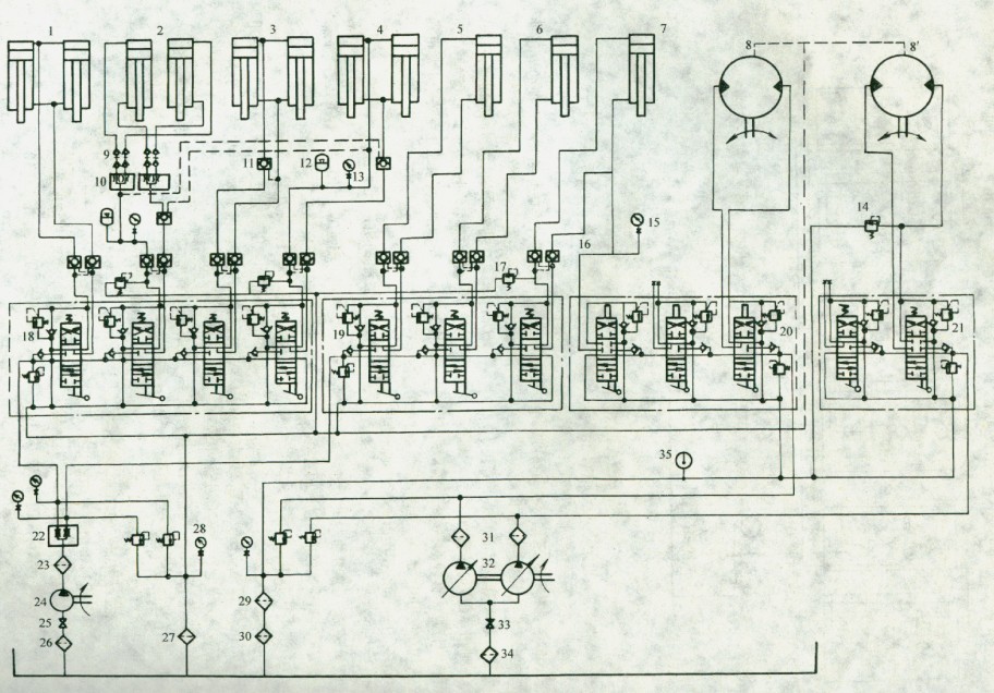 為了實(shí)現(xiàn)上述要求,液壓系統(tǒng)進(jìn)行了如下改進(jìn)(見圖4.14-20)。