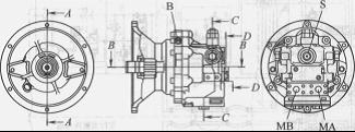 B-自回轉(zhuǎn)鎖定電磁閥I S-自控制閥;T到油箱;MA-自控制閥;MB-自控制閥