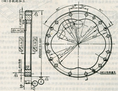 (2)對基圓進行精確分度。當(dāng)導(dǎo)軌曲線凹凸交接的過渡段在1~1.5°時,分度精度取±3’~±5’。