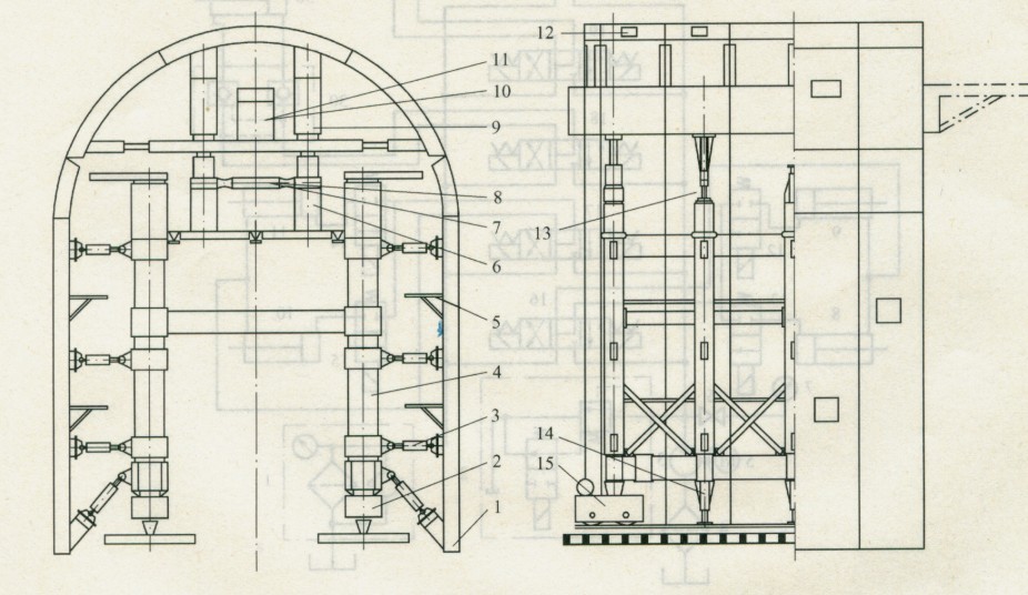 【圖1隧道液壓鋼模襯砌臺(tái)車結(jié)構(gòu)示意圖】