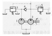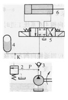 1-大流量泵2-小流量泵3-順序閥4-單向閥5-溢流閥