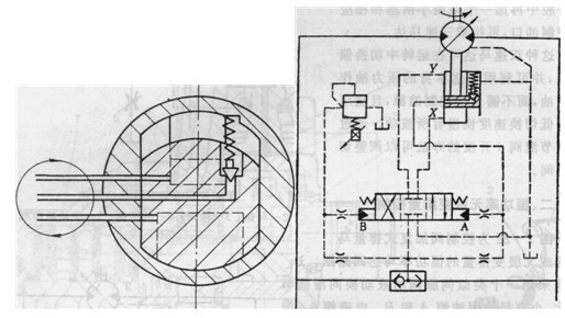 從圖2可以看出,這種變排量控制是靠加一個壓力信號到變量控制閥上,信號壓力值決定了偏心溢流閥的調(diào)整值,而偏心溢流閥的調(diào)定值又決定了馬達的排量,由此構成一個液壓—一機械反饋的閉環(huán)控制。這種控制方式允許預先設定馬達變排量范圍內(nèi)的任一排量值,并據(jù)此在整個運行速度范圍內(nèi)使馬達平穩(wěn)地加速或減速。調(diào)整比例壓力閥就可以實現(xiàn)速度調(diào)節(jié)。這種結構顯然適宜于電液遙控以及要求用微處理機來控制的場合。